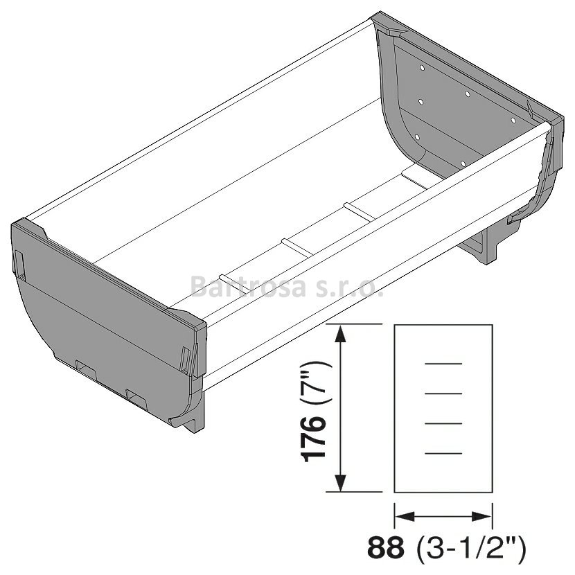 Jmenovitá délka: 176 mm Délka: 176 mm Šířka: 88 mm Konstrukční výška: 60 mm Vnitřní hloubka: 46 mm Síla materiálu: 0.5 mm Materiál: Inox Barva/povrch: Nerez podélně broušený Design: Příčné drážky