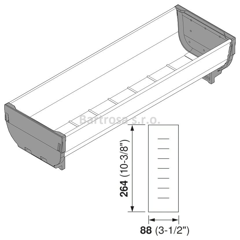 Jmenovitá délka: 264 mm Délka: 264 mm Šířka: 88 mm Konstrukční výška: 60 mm Vnitřní hloubka: 46 mm Síla materiálu: 0.5 mm Materiál: Inox Barva/povrch: Nerez podélně broušený Design: Příčné drážky