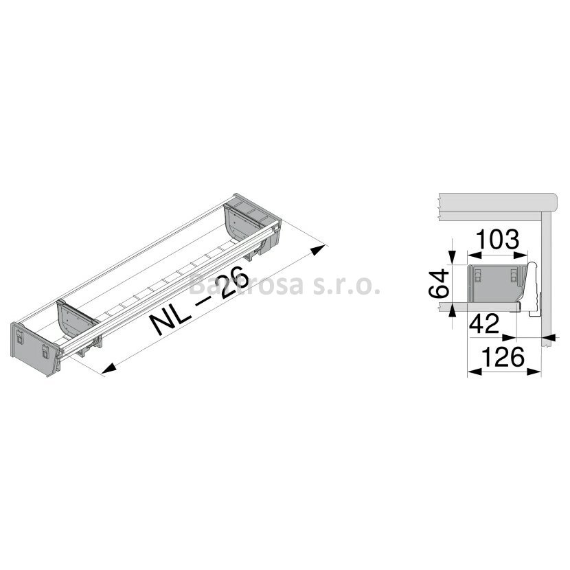 Jmenovitá délka: 600 mm Délka: 574 mm Min. šířka: 103 mm Výška: 64.2 mm Rozsah artiklu: Sada Povrch: Nerez broušený Barva: prachově šedá