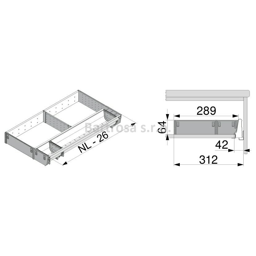 Jmenovitá délka: 600 mm Délka: 574 mm Min. šířka: 289 mm Výška: 64.2 mm Rozsah artiklu: Sada Povrch: Nerez broušený Barva: prachově šedá
