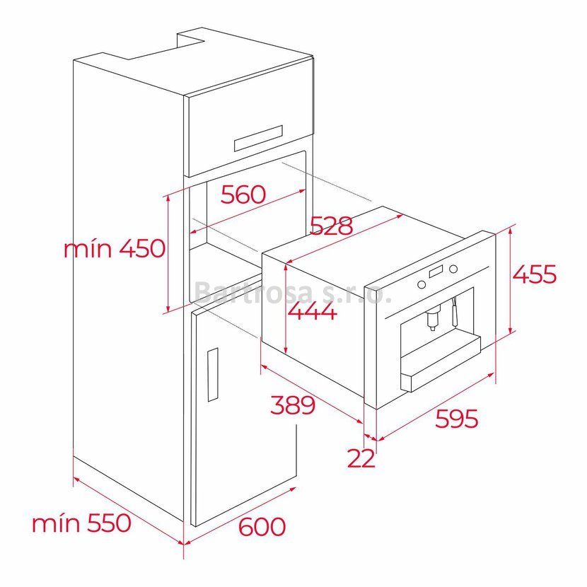 - Hloubka pro vestavbu (mm): 550