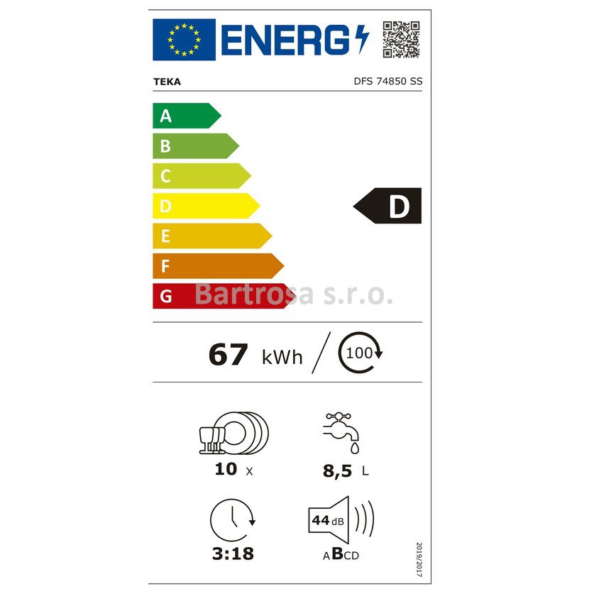 Teka DFS 74850 SS Volně stojící myčka 45 cm nerez