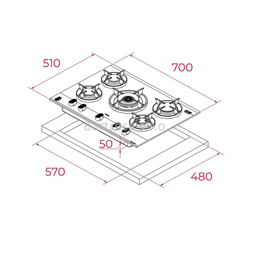 Teka GBC 75 VB VG Skleněná plynová varná deska 70 cm z edice Van Gogh světle šedá