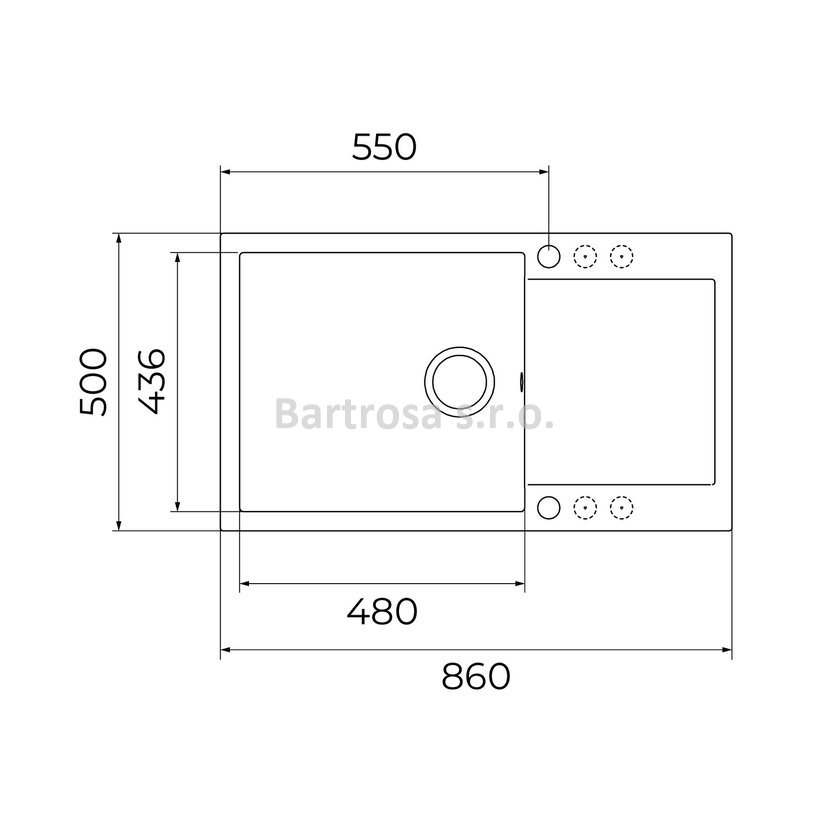 - Rozměr dřezu: 860 x 500 mm
