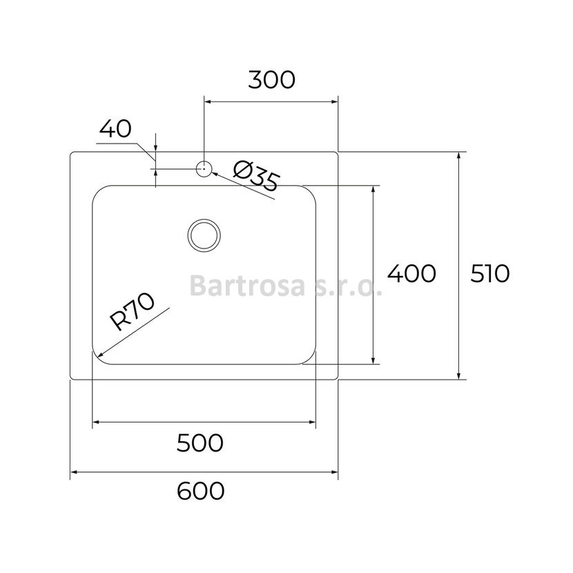 - Rozměr dřezu: 600 x 510 mm