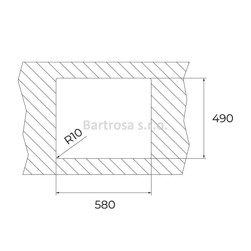- Horní montáž (výřez 580x490 mm/R10)