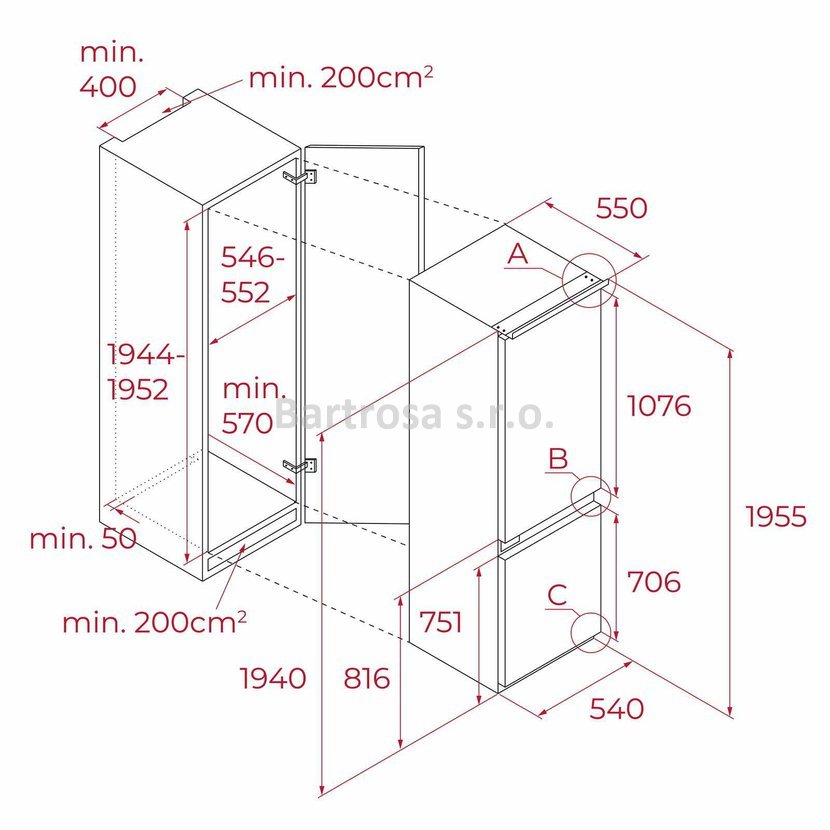 - Rozměry: v 1955 x š 540 x h 550 mm